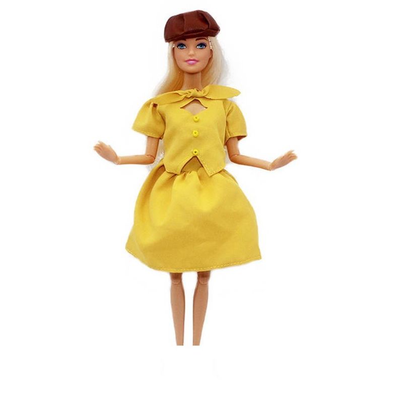 Set imbracaminte papusa,TAKUMI, compleu fusta, bluza si sapca, Beverly, 3 ani, Galben, Textil Set imbracaminte papusa,TAKUMI, compleu fusta, bluza si sapca, Beverly, 3 ani, Galben, Textil