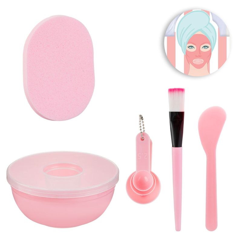 Set instrumente masca fata, roz, 5 bucati, bol amestecare, perie, spatula, burete Set instrumente masca fata, roz, 5 bucati, bol amestecare, perie, spatula, burete