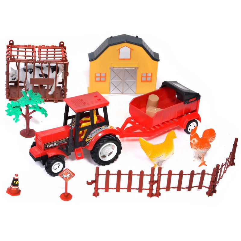 Set jucarii ferma, tractor cu remorca si animale, multicolor, 15 piese Set jucarii ferma, tractor cu remorca si animale, multicolor, 15 piese
