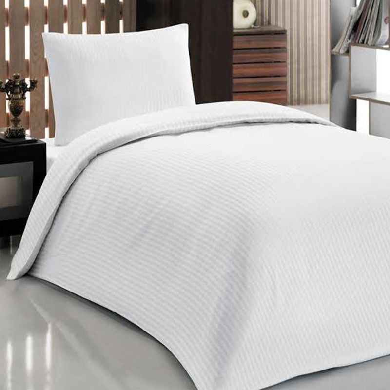 Set Lenjerie de pat, 100% bumbac, Damasc Saten, dungi subtiri, 1 persoana, alb Set Lenjerie de pat, 100% bumbac, Damasc Saten, dungi subtiri, 1 persoana, alb