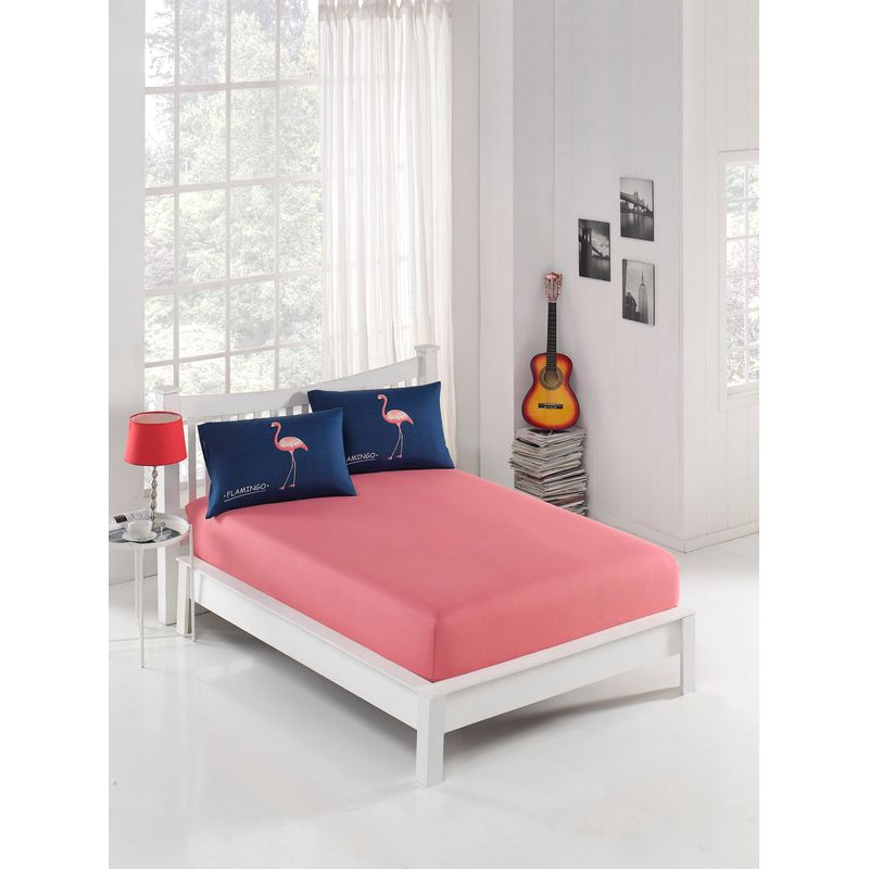 Setul nostru de cearceafuri duble vine cu două fețe de pernă, fiecare măsurând 50 x 70 cm. Sistemul elegant de închidere în plic adaugă o notă de rafinament ansamblului dvs. de lenjerie de pat. Combinația armonioasă de culori albastru închis și roz creează o atmosferă senină și primitoare în dormitorul dvs.