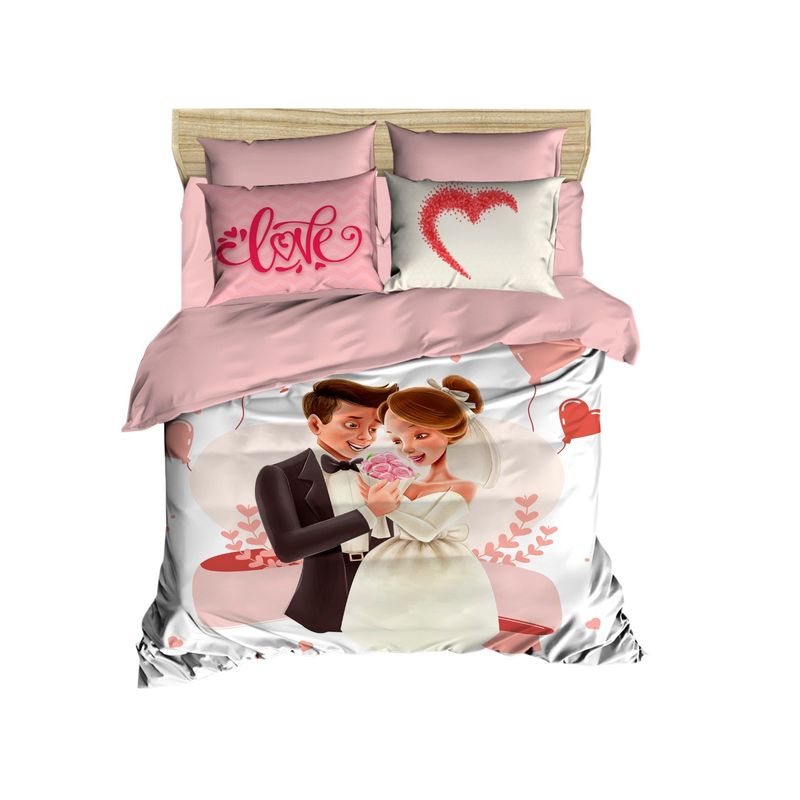 Partea superioară a cuverturii de plapumă și a feței de pernă este realizată din microsatină 100% poliester, asigurând o atingere mătăsoasă și netedă pe pielea dumneavoastră. Experimentați senzația de lux a acestei țesături de calitate superioară în timp ce adormiți într-un somn liniștit. Cearșaful plat și partea inferioară a feței de plapumă și a feței de pernă sunt confecționate din bumbac 100%, oferind respirabilitate și confort pe tot parcursul nopții.