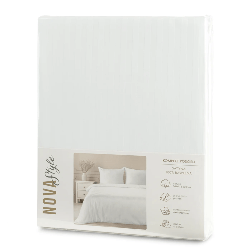 Set lenjerie de pat VERA din bumbac satinat cu dungi Set lenjerie de pat VERA din bumbac satinat cu dungi,1 husa plapuma + 2 fete perna, 160 x 200 cm, alb