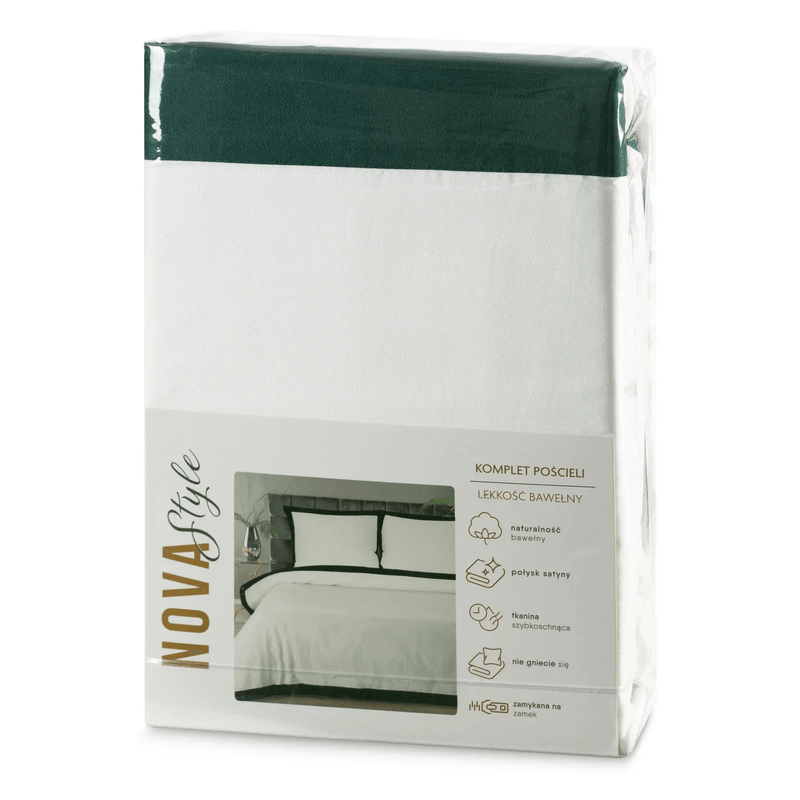 Set lenjerie NOVA STYLE LAURA din amestec de bumbac si fibre de poliester, 160 x 200 cm Set lenjerie NOVA STYLE LAURA din amestec de bumbac si fibre de poliester ,160 x 200 cm, alb, verde