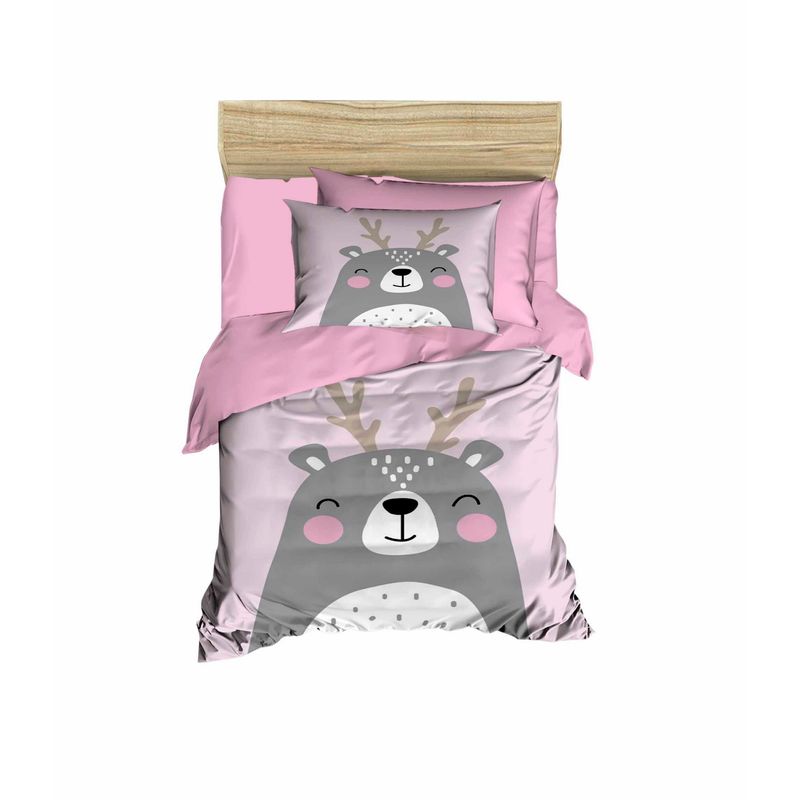 Partea superioară a husei de plapumă și a feței de pernă este realizată din microsatină 100% poliester, oferind o senzație de lux pe pielea delicată a bebelușului dumneavoastră. Partea inferioară este confecționată din bumbac 100%, asigurând respirabilitate și confort maxim.
