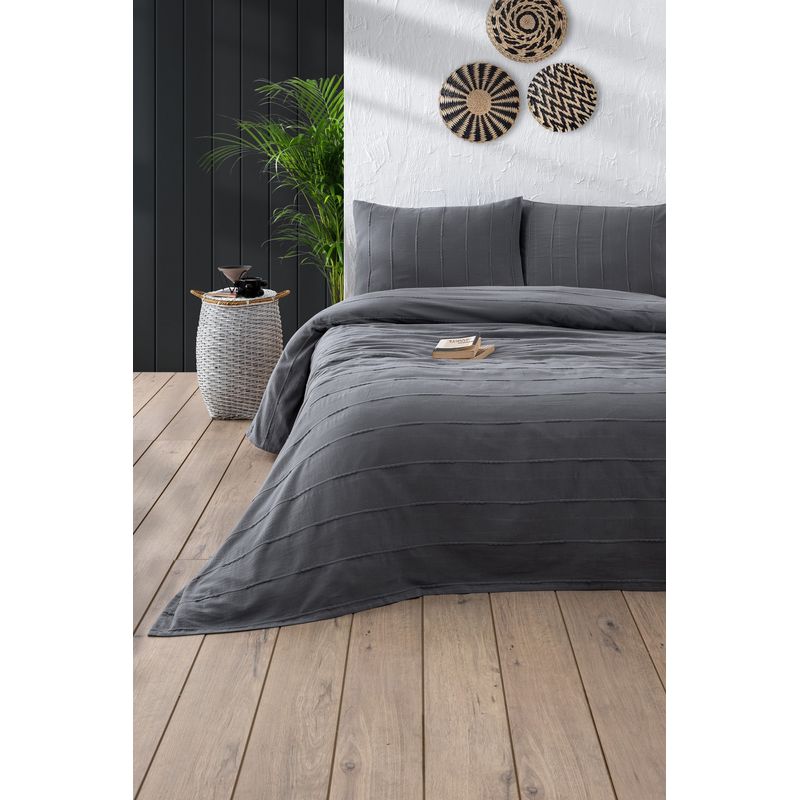 Set lenjerie pat dublu, L'essentiel Maison, antracit, 210x220 cm, 100% bumbac Set lenjerie pat dublu, L'essentiel Maison, antracit, 210x220 cm, 100% bumbac