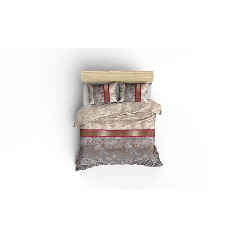 Îmbunătățiți aspectul estetic al dormitorului dvs. cu setul nostru elegant de cuvertură de plapumă. Combinația de culori crem, bej, gri, roșu bordo și alb creează un aspect sofisticat și atemporal care completează orice stil de interior.
