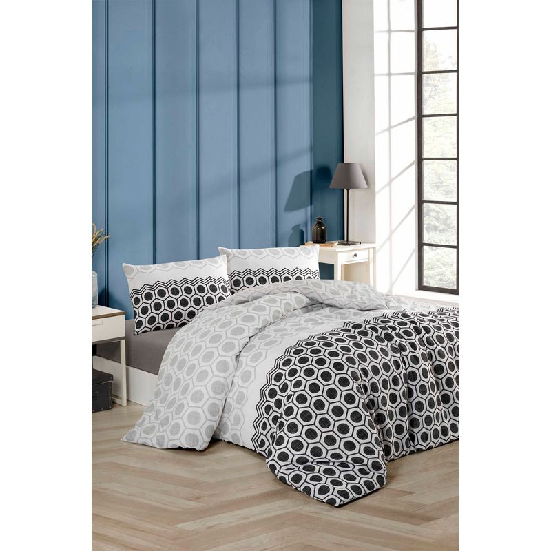 Set lenjerie pat dublu, L'essentiel Maison, negru alb gri, 200x220 cm, bumbac poliester Set lenjerie pat dublu, L'essentiel Maison, negru alb gri, 200x220 cm, bumbac poliester