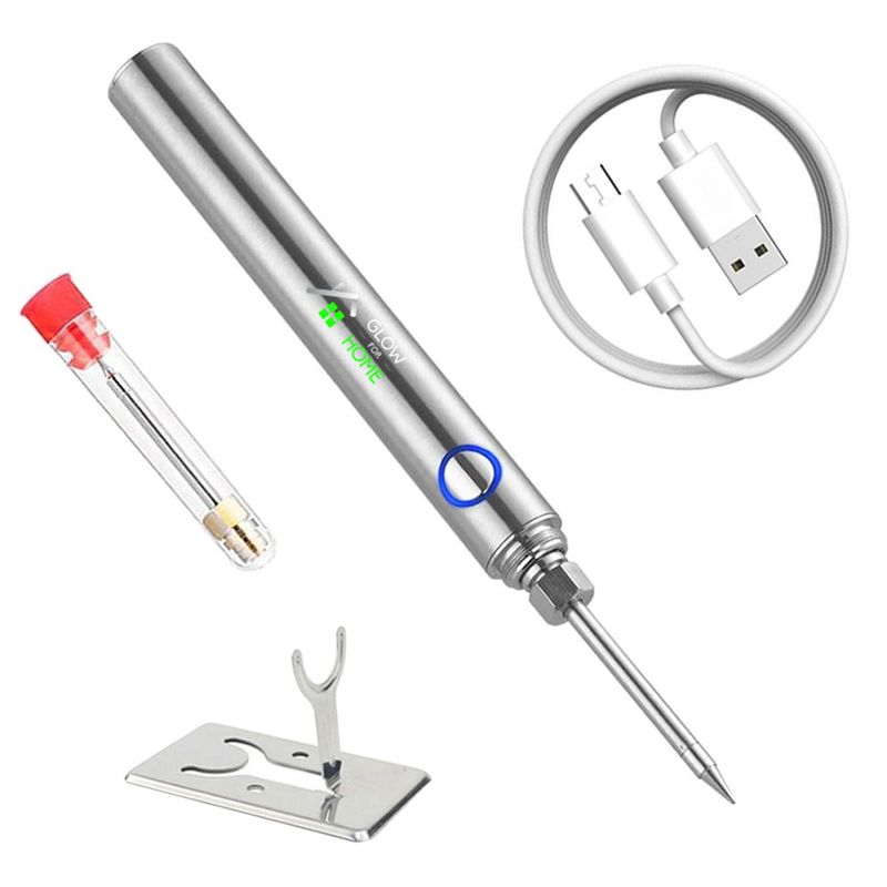 Set letcon portabil cu incarcare USB, GlowforHome, pistol pentru lipit, cositorit si sudat componente electronice, pentru interior si exterior, suport metalic, temepratura ajustabila, argintiu
