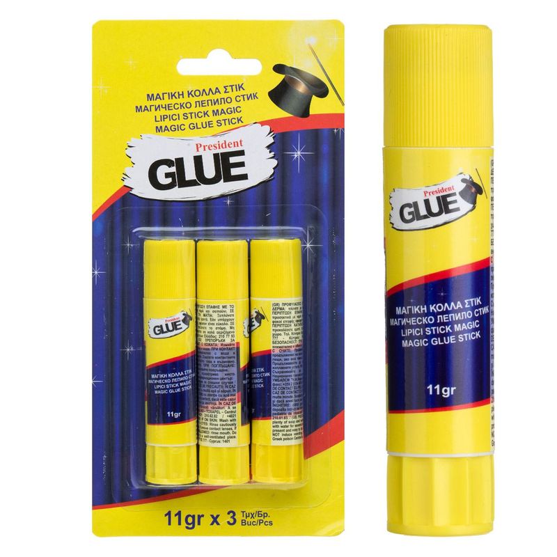 Set lipici stick, president glue, magic, capacitate 11g, 3 bucati, multicolor Set lipici stick, president glue, magic, capacitate 11g, 3 bucati, multicolor