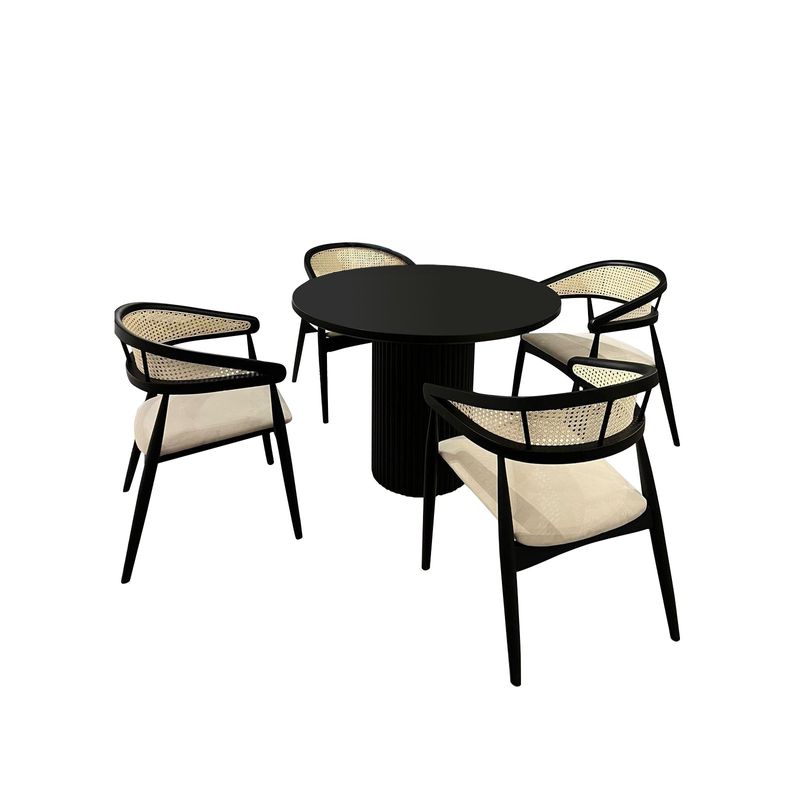 Vă prezentăm setul nostru rafinat de masă și scaune, un amestec perfect de stil și funcționalitate care vă va ridica experiența dvs. de luat masa la noi înălțimi. Confecționat cu cea mai mare precizie și atenție la detalii, acest set de 5 piese este conceput pentru a impresiona și a rezista testului timpului.