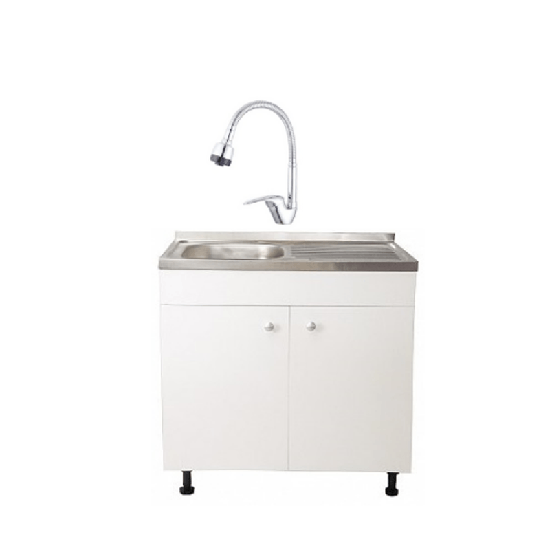 Casa si GradinaSanitareChiuveta bucatarie si accesoriiChiuvete bucatarieSet masca chiuveta, alb, Raul construct, 80 x 50 x 80 cm, Chiuveta anticalcar, baterie flexibila si sifon G207EU