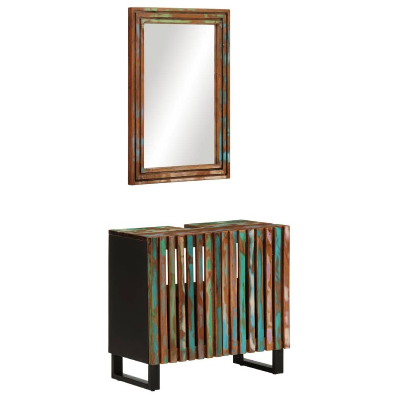 Set mobilier de baie, 2 piese, lemn masiv de acacia, multicolor Set mobilier de baie, 2 piese, lemn masiv de acacia, multicolor