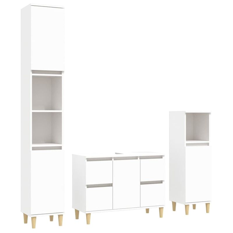 Set mobilier de baie Set mobilier de baie, 3 piese, alb, lemn compozit