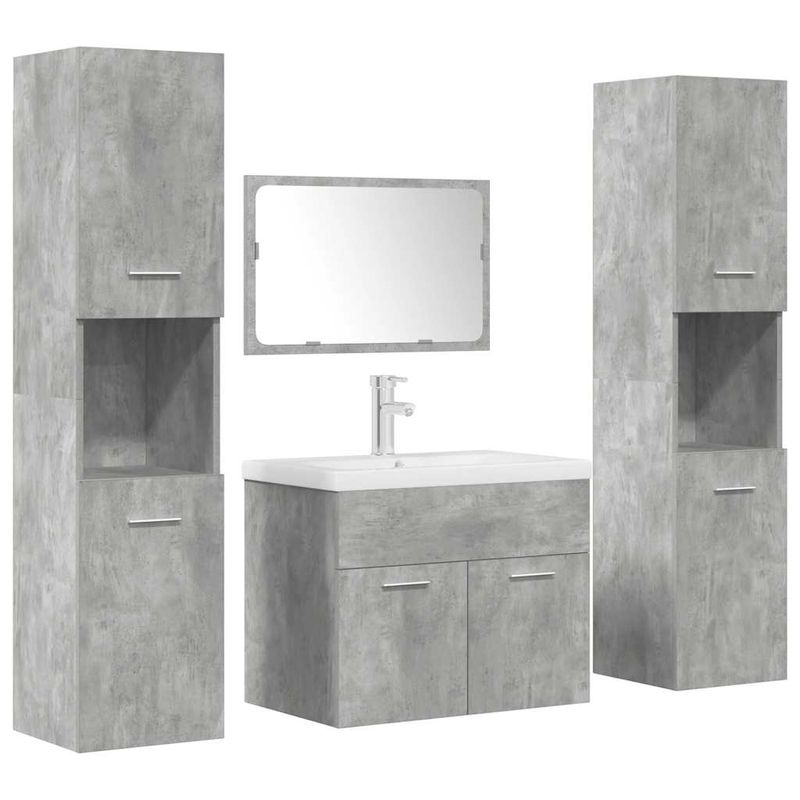 Set mobilier de baie, 5 piese, gri beton, lemn prelucrat Set mobilier de baie, 5 piese, gri beton, lemn prelucrat