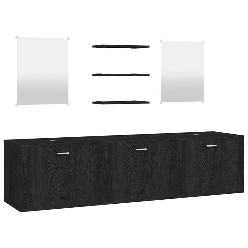 Set mobilier de baie, 6 piese, negru, lemn prelucrat Set mobilier de baie, 6 piese, negru, lemn prelucrat