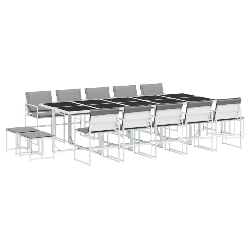 Set mobilier de gradina, 15 piese, cu perne, alb, textilena Set mobilier de gradina, 15 piese, cu perne, alb, textilena