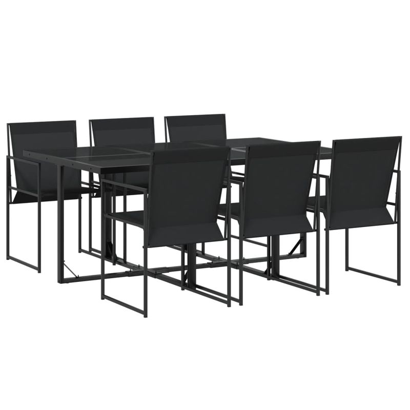 Set mobilier de gradina, 7 piese, negru, textilena Set mobilier de gradina, 7 piese, negru, textilena