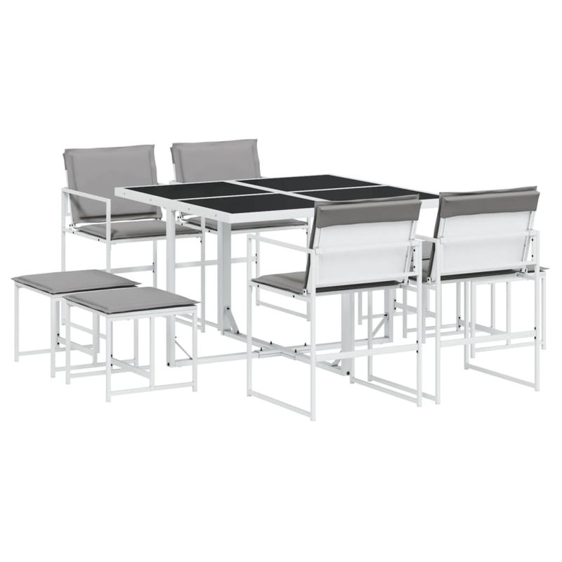 Set mobilier de gradina, 9 piese, cu perne, alb, textilena Set mobilier de gradina, 9 piese, cu perne, alb, textilena
