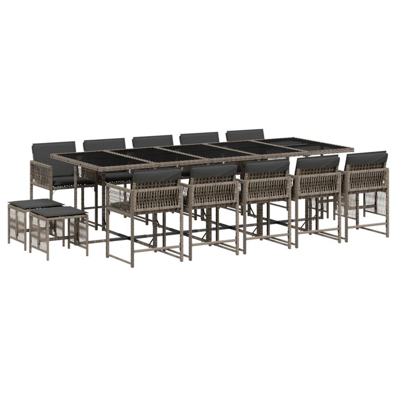 Set mobilier de gradina cu perne, 15 piese, gri, poliratan Set mobilier de gradina cu perne, 15 piese, gri, poliratan