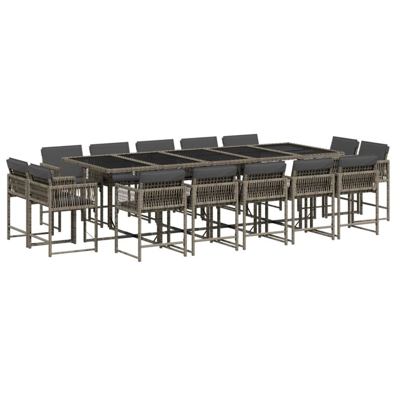 Set mobilier de gradina cu perne, 15 piese, gri, poliratan Set mobilier de gradina cu perne, 15 piese, gri, poliratan