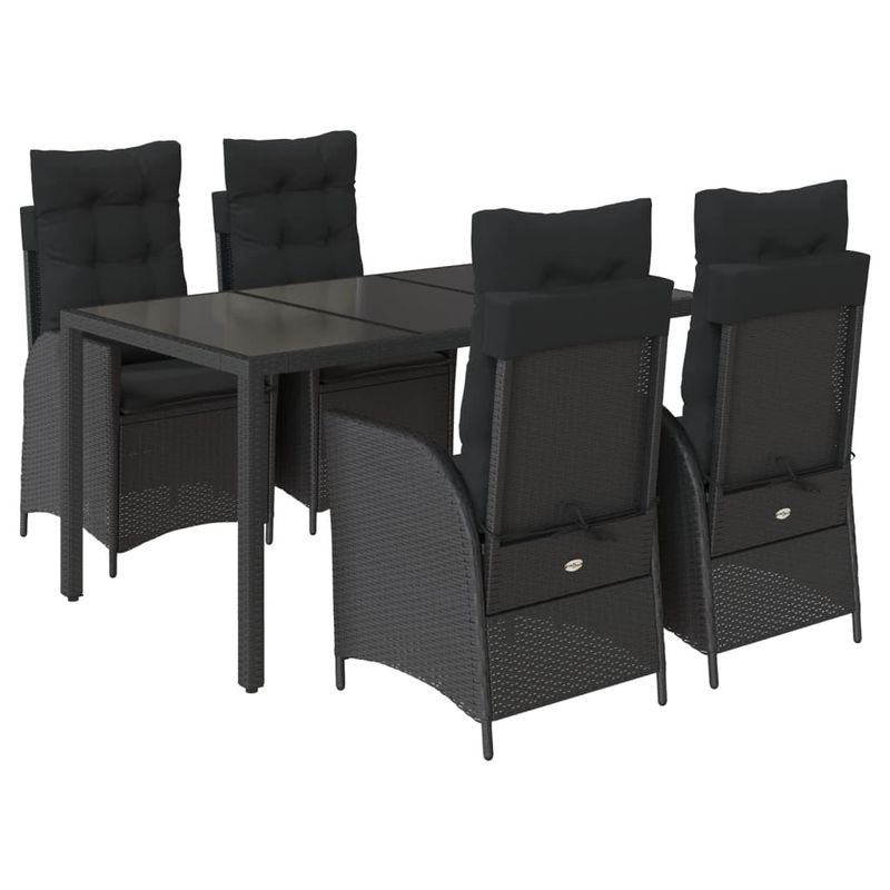 Set mobilier de gradina cu perne, 5 piese, negru, poliratan Set mobilier de gradina cu perne, 5 piese, negru, poliratan