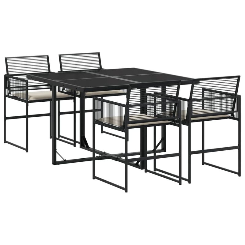 Set mobilier de gradina cu perne, 5 piese, negru, poliratan Set mobilier de gradina cu perne, 5 piese, negru, poliratan