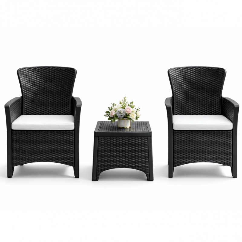 Acest set este ideal pentru relaxare in aer liber, cafea de dimineata sau seri linistite pe terasa. Designul sau simplu si universal se potriveste in orice spatiu exterior. 🌿