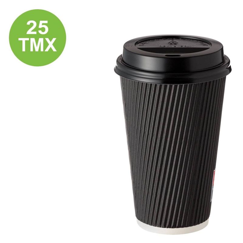 Set pahare carton cu capace, ripple negre, capacitate 480ml, 25 bucati Set pahare carton cu capace, ripple negre, capacitate 480ml, 25 bucati