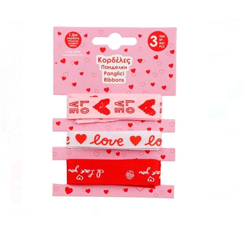 Set Panglici cu Inimi 3 Modele "Love" 1.5m, DIY, Roz, Alb, Rosu, 3 buc Set Panglici cu Inimi 3 Modele "Love" 1.5m, DIY, Roz, Alb, Rosu, 3 buc