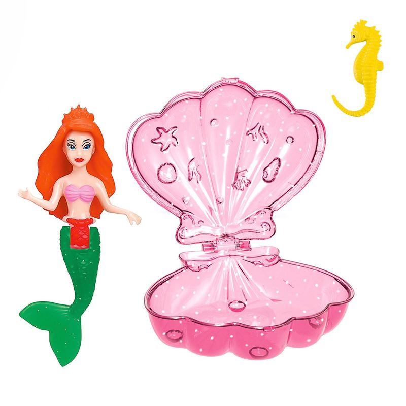 Set papusi sirena in scoica, 3 bucati, multicolor, par lung, coada si stea de mare Set papusi sirena in scoica, 3 bucati, multicolor, par lung, coada si stea de mare