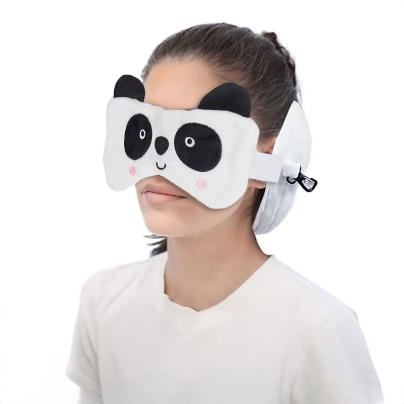 Set perna de calatorie si masca de somn, model panda, material poliester, alb-negru Set perna de calatorie si masca de somn, model panda, material poliester, alb-negru