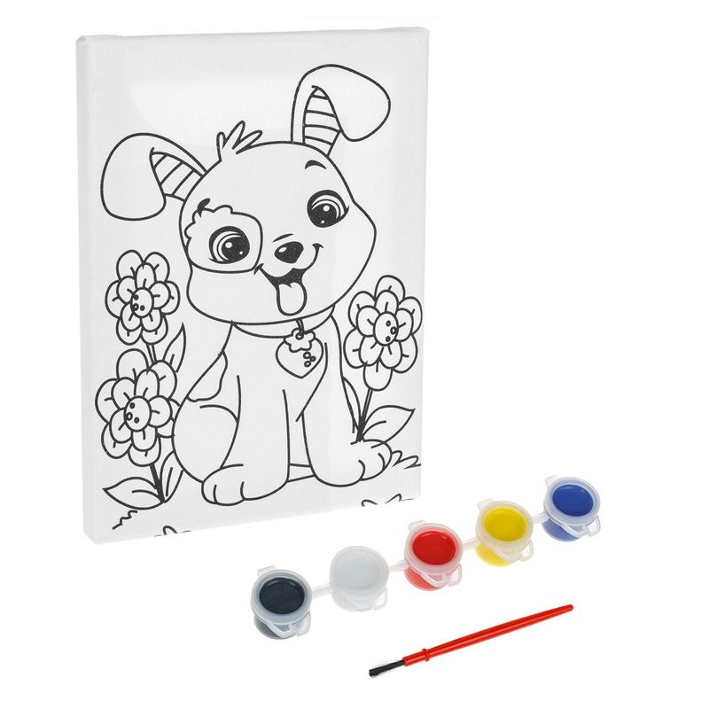 Set pictura canvas, model caine, 20x 15cm, 5 vopsele acrilice, 1 pensula, multicolor Set pictura canvas, model caine, 20x 15cm, 5 vopsele acrilice, 1 pensula, multicolor