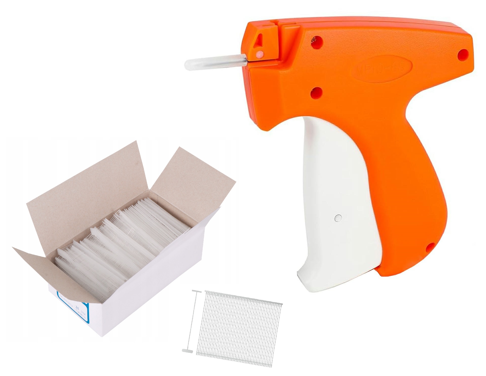 Set pistol de agatat etichete cu 5000 buc agatatori, plastic si otel, portocaliu/alb Set pistol de agatat etichete cu 5000 buc agatatori, plastic si otel, portocaliu/alb