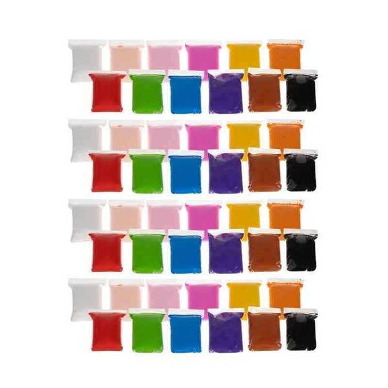 48 pungute de plastilina spuma modelabila in 12 culori - setul include 48 pungulete de plastilina spuma modelabila in 12 culori. Culorile sunt vii si frumoase, astfel incat incurajeaza distractia si creativitatea. Ele arata, de asemenea, minunat dupa ce sunt finisate. Avantajul consta si in combinatia de culori, cand dorim sa cream o culoare care nu se afla in set, pur si simplu combinam culorile intre ele, astfel se creeaza o noua nuanta.