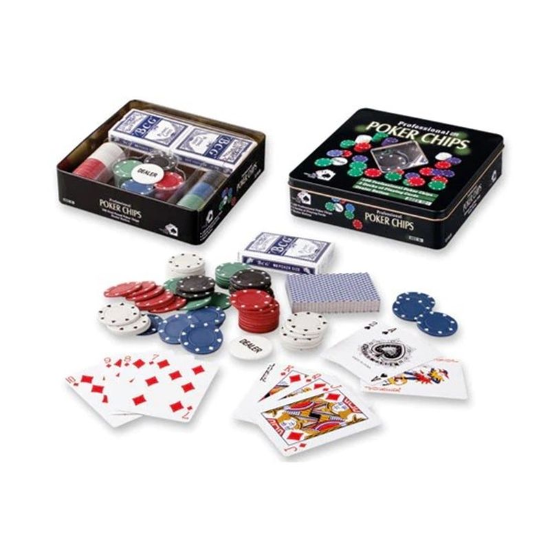 Set Poker cu 100 chips poker in cutie metalica, buton dealer, jetoane 4 culori de 1,5 10 si 25,2 carti joc Set Poker cu 100 chips poker in cutie metalica, buton dealer, jetoane 4 culori de 1,5 10 si 25,2 carti joc