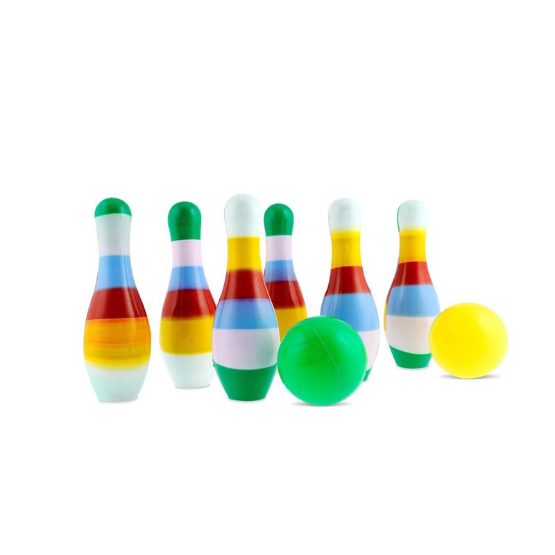 Set popice bowling, 6 popice, 2 mingi, multicolor, dimensiuni popice 17cm, dimensiuni mingi 7cm Set popice bowling, 6 popice, 2 mingi, multicolor, dimensiuni popice 17cm, dimensiuni mingi 7cm