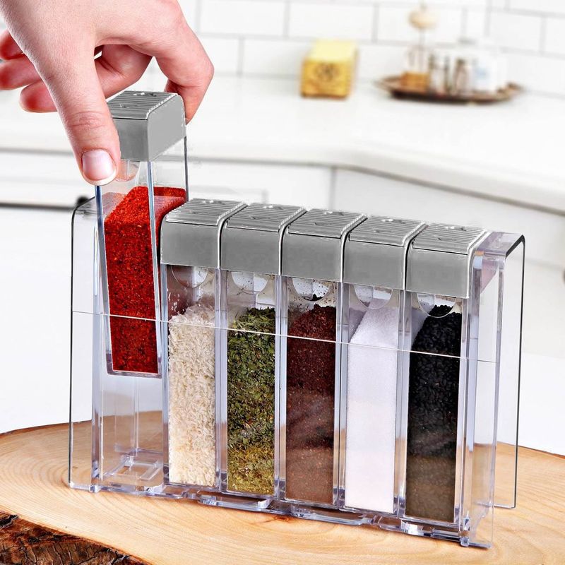 Set recipiente condimente, kitchen master, transparent, capac gri, 6 bucati Set recipiente condimente, kitchen master, transparent, capac gri, 6 bucati