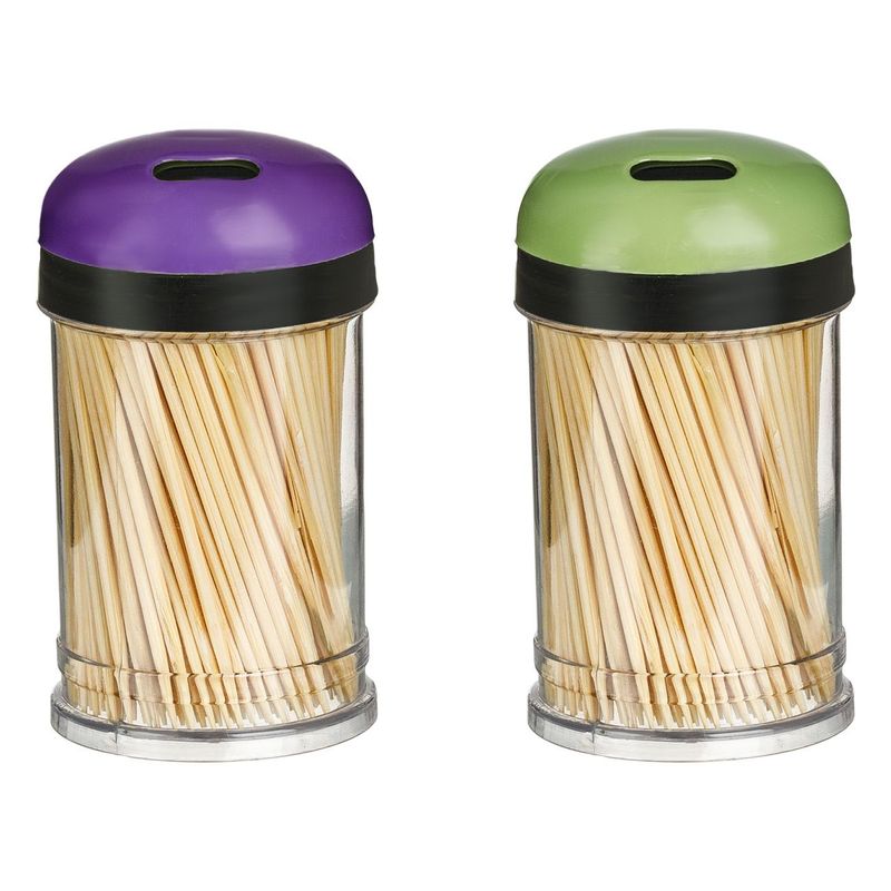 Set recipiente scobitori, 2 bucati, bambus, capace mov si verde, diametru 4cm x inaltime 7cm Set recipiente scobitori, 2 bucati, bambus, capace mov si verde, diametru 4cm x inaltime 7cm