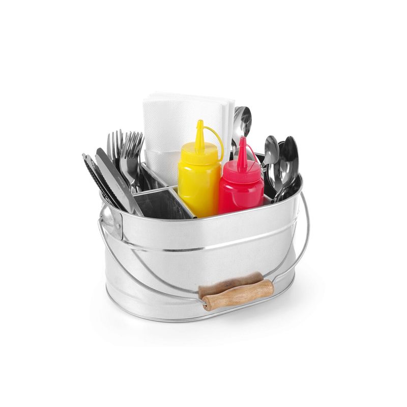 Set rustic tacamuri si servetele, Hendi, tip galeata, 245x167x(H)132, otel galvanizat Set rustic tacamuri si servetele, Hendi, tip galeata, 245x167x(H)132, otel galvanizat