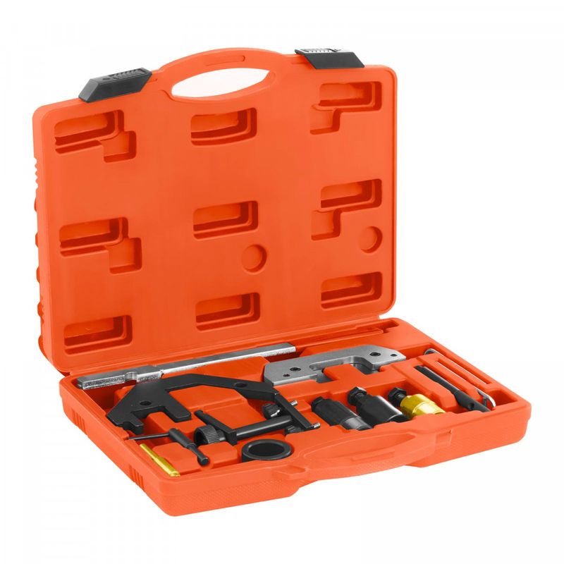 Setul contine 13 instrumente diferite care pot fi utilizate pentru o varietate de aplicatii. Sunt fabricate din otel aliat de inalta calitate si sunt foarte robuste si durabile. Instrumentele de sincronizare pot fi folosite cu multa forta si au o potrivire perfecta. Puteti lucra intr-un mod eficient si profesional cu setul de instrumente de blocare a motorului.