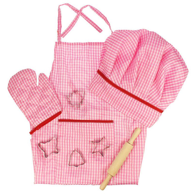 Sortuletul cu patratele boneta de bucatar asortata si manusa de bucatarie le vor incanta cu siguranta pe fetite si vor starni interesul pentru activitatile din bucatarie.