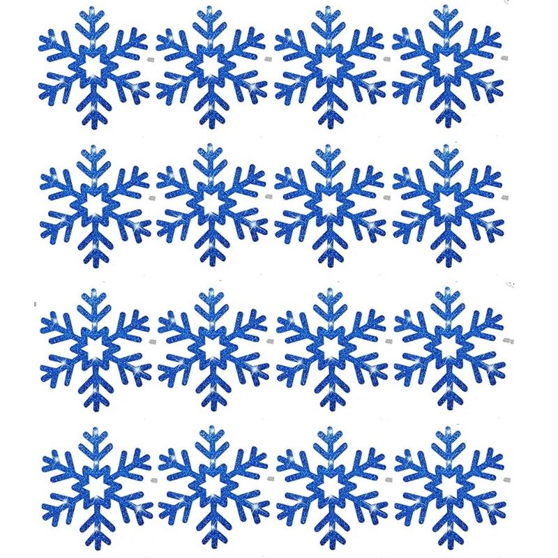 Set stickere decorative Craciun, fulgi stralucitori, albastru inchis, gliter, model 5, 16 bucati, 4x4 cm Set stickere decorative Craciun, fulgi stralucitori, albastru inchis, gliter, model 5, 16 bucati, 4x4 cm