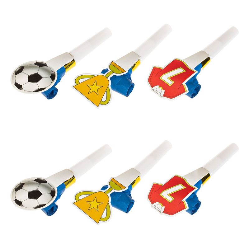 Set suflatori petrecere, model fotbal, albastru, 6 bucati Set suflatori petrecere, model fotbal, albastru, 6 bucati