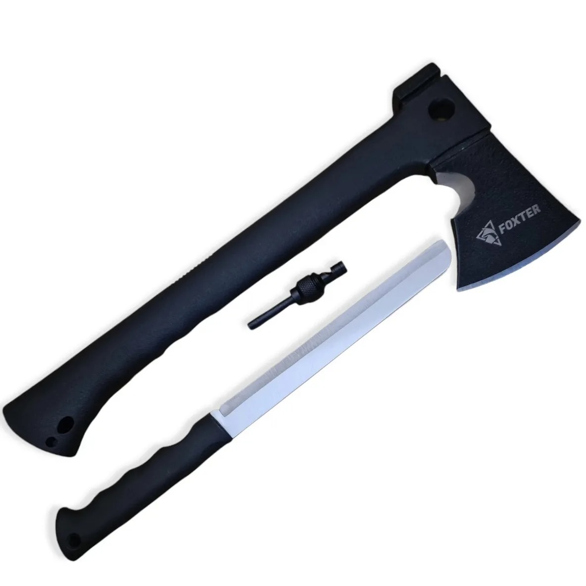 Set supravietuire 7 n 1 Foxter, topor, cutit, cremene si fluier, teaca inclusa Set supravietuire 7 n 1 Foxter, topor, cutit, cremene si fluier, teaca inclusa