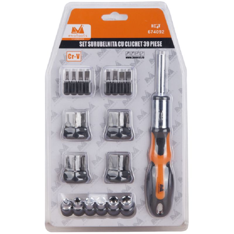 Set Surubelnita cu clichet EvoTools, 39 piese Set Surubelnita cu clichet EvoTools, 39 piese