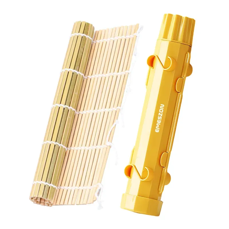 Set complet Sushi Rolls 2, EMESZON®, Aparat manual de rulat Sushi, Kit complet cu forma Sushi si rola bambus, Lavabil in masina de spalat vase, Gadget bucatarie Japoneza, ideal pentru Sushi lovers si pasionatii de bucataria Asiatica, galben