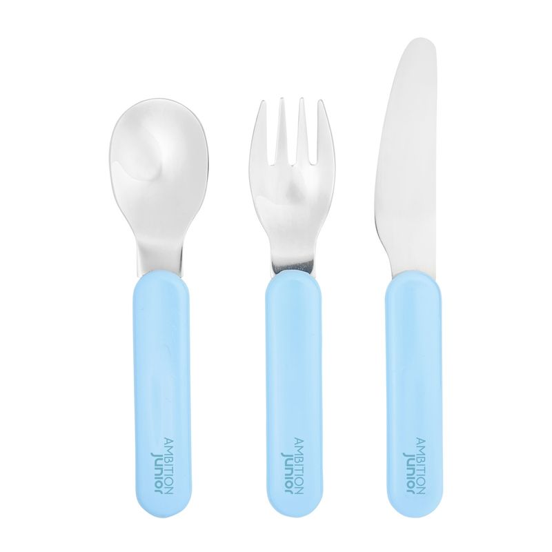 Set tacamuri copii AMBITION JUNIOR Eddie, 3 piese, albastru, pentru baieti Set tacamuri copii AMBITION JUNIOR Eddie, 3 piese, albastru, pentru baieti