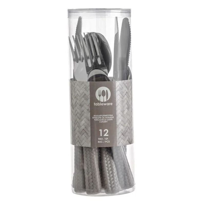 Adauga un strop de rafinament rustic si functionalitate practica mesei tale cu acest Set de tacamuri cu model impletit, o alegere eleganta si durabila pentru a servi mesele intr-un mod stilat si convenabil. Realizat din otel inoxidabil de inalta calitate, acest set combina rezistenta si durabilitatea cu un design elegant cu model impletit in nuante de bej, aducand un aer natural si sofisticat decorului mesei tale. Setul contine 12 piese, fiind perfect pentru utilizarea zilnica sau pentru ocazii speciale.