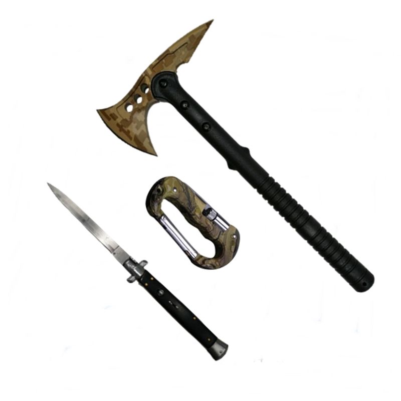 Set Topor, Carabina multifunctionala si Briceag automat, IdeallStore®, Otel, Negru Set Topor, Carabina multifunctionala si Briceag automat, IdeallStore®, Otel, Negru